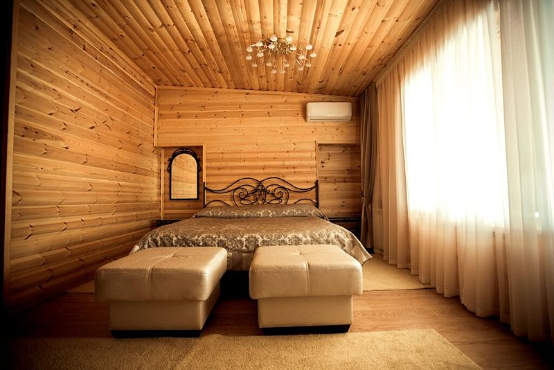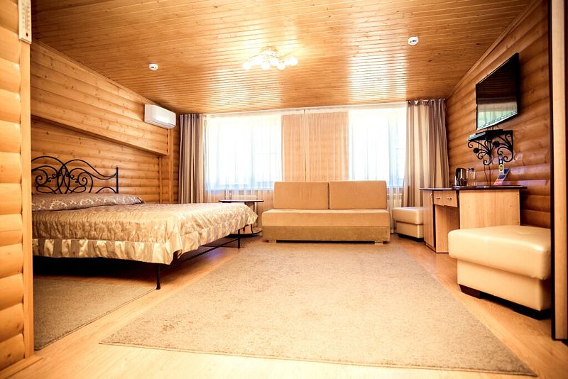 Просторный номер с отделкой деревом для комфортного проживания и полноценного отдыха.