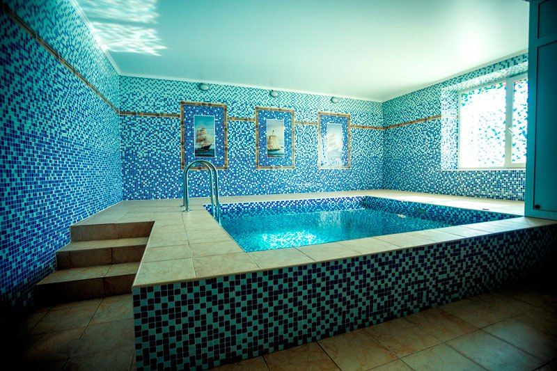 Инфраструктура: бассейн, зона отдыха, душТемпература парения: 50 °CВремя работы: от с 12.00 до 23.00 чВместимость комнаты отдыха – до 12 человек.
