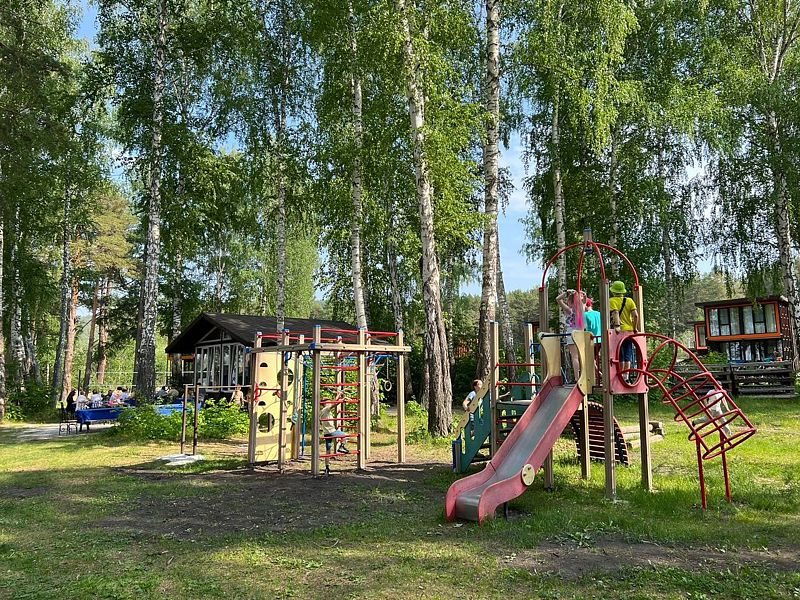 Юные гости могут насладиться беззаботным отдыхом на детской игровой площадке, расположенной прямо на территории, которая включает в себя увлекательные развлечения — горку, турники и песочницу, где ребята смогут вдоволь поиграть и повеселиться.