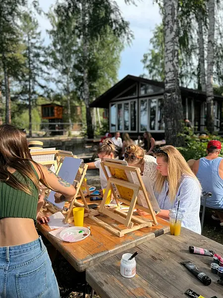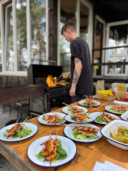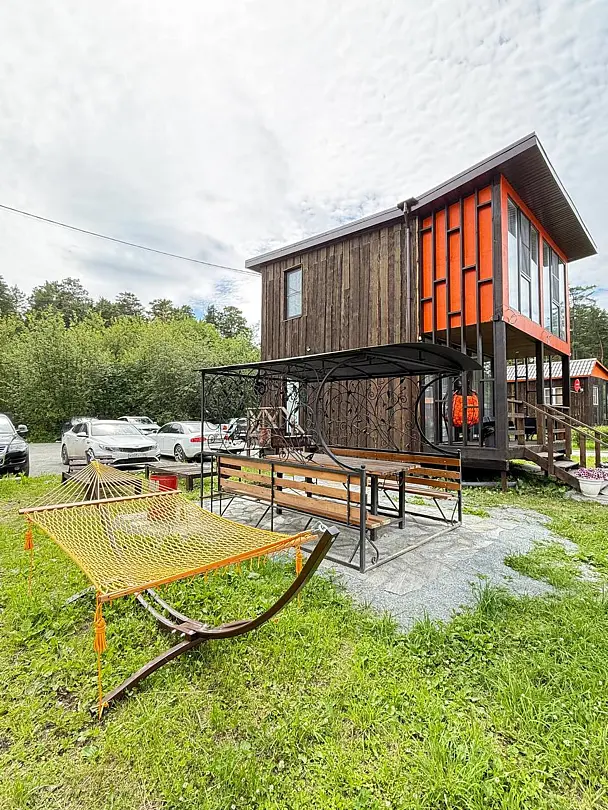 На территории базы отдыха «Тургояк шале» функционирует летнее кафе, идеально подходящее для встреч с семьей и друзьями в праздничной атмосфере.