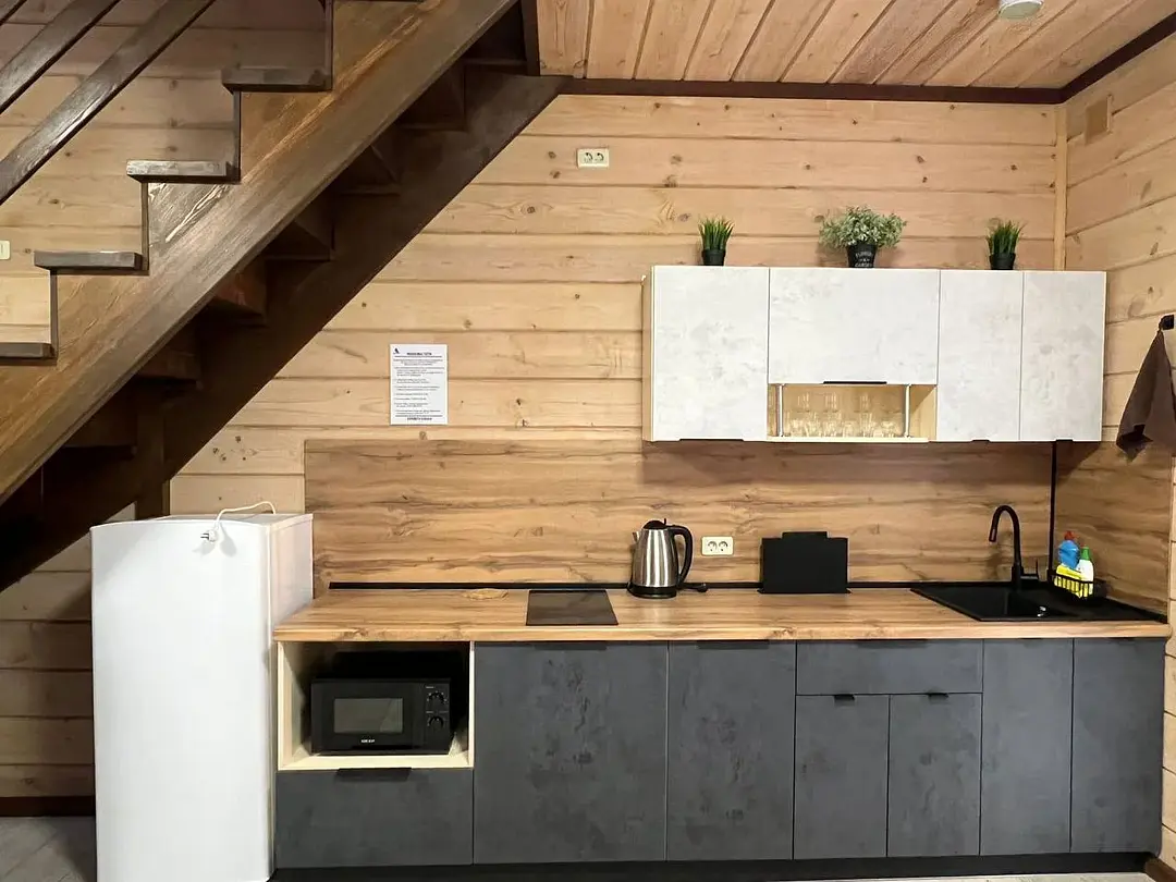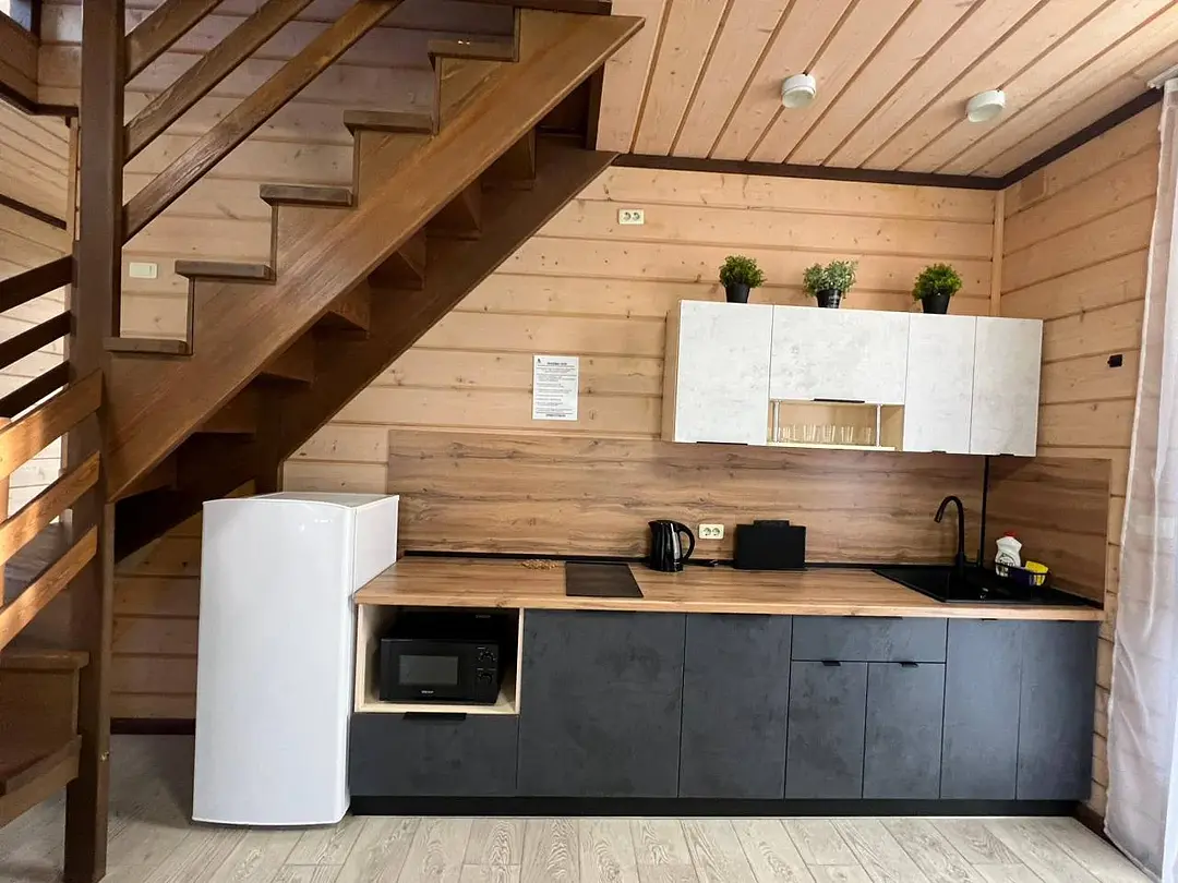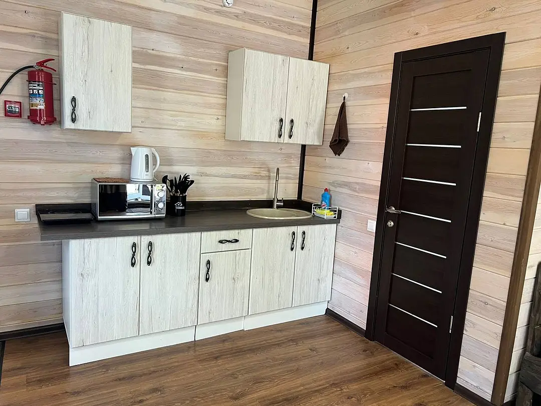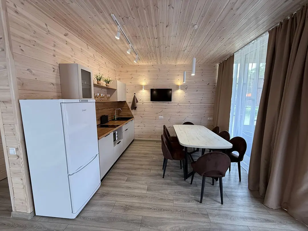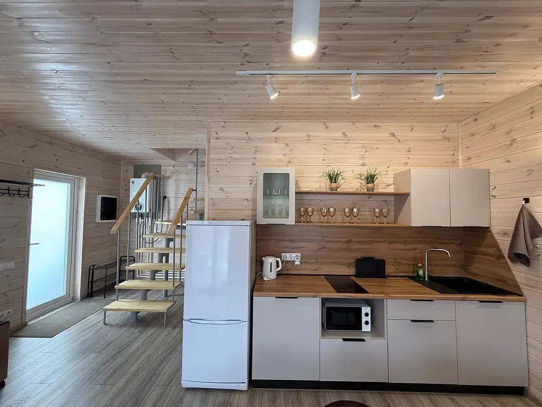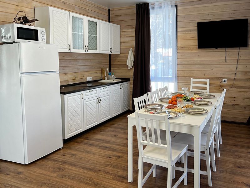 В доме имеется вся необходимая посуда для приготовления и приема пищи. Микроволновая печь, чайник, холодильник, телевизор, фен, wi-fi.