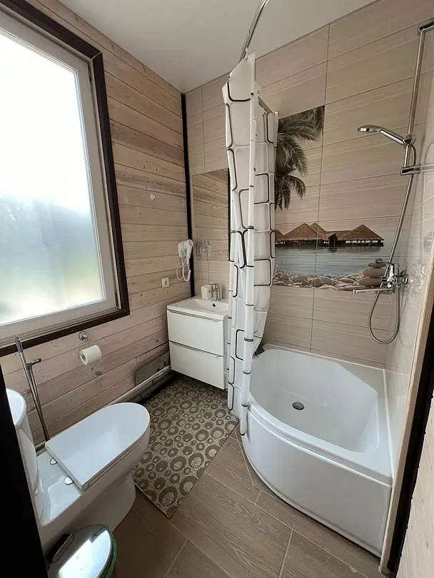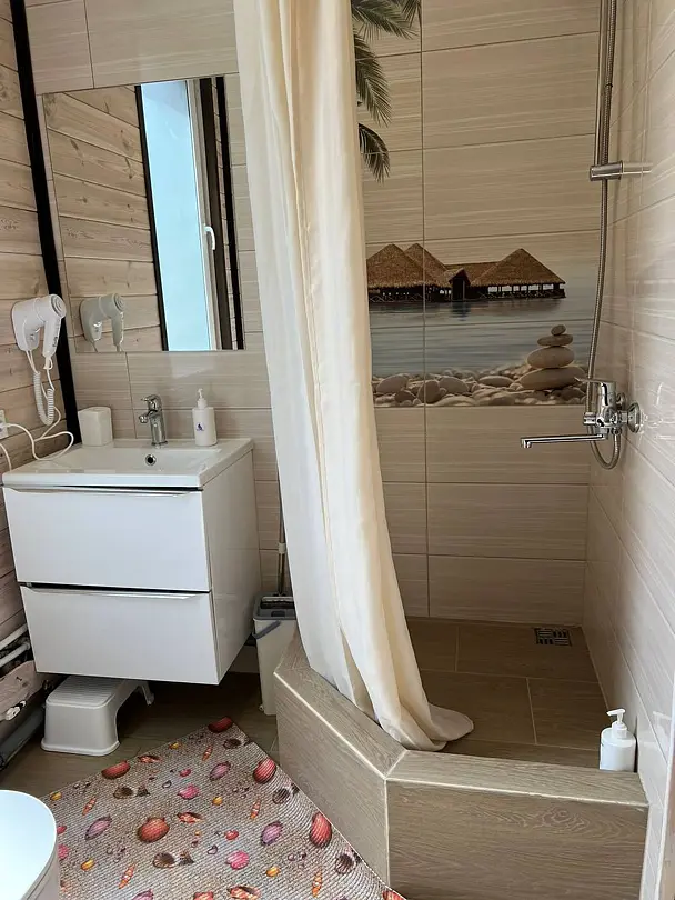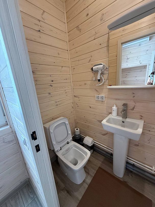 Домик на 2х без удобств. Душ и туалет на территории кафе.