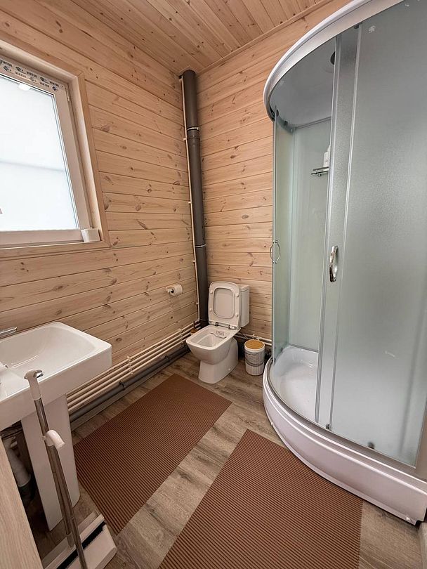 Не написано в коментариях, что рядом, в 30 метрах от домиков идёт строительство новой турбазы с использованием КАМАЗов, экскаваторов. Прокладывается вдоль дороги к шале трубопровод. Положительный момент, что техника начинала работать после 10 утра.