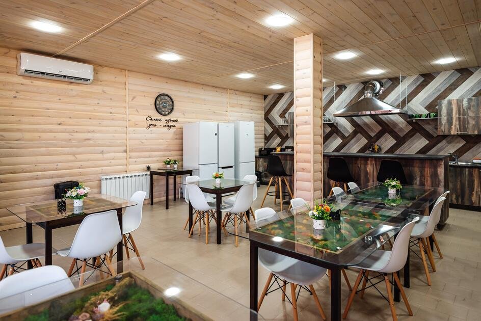 Читать полностьюНа территории базы отдыха «Рыжий кот» есть большая кухня-столовая.
