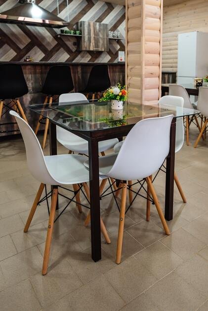 Изюминка кухни — это дизайнерские столы, они никого еще не оставили равнодушным.
