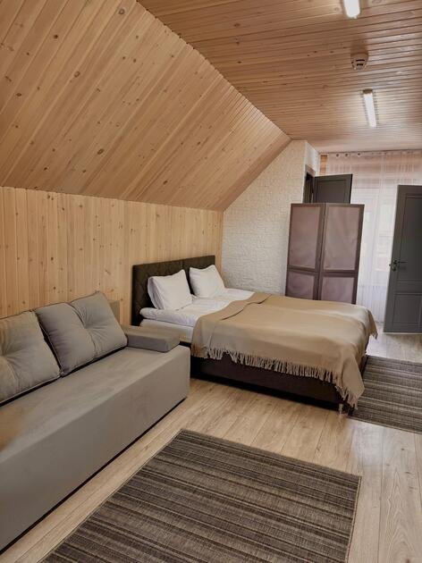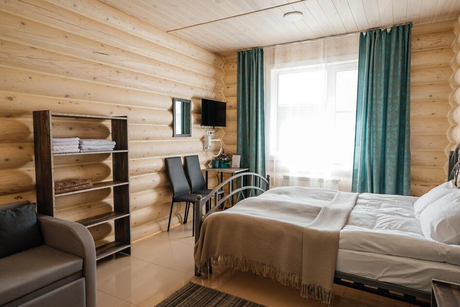 На территории базы отдыха расположены два просторных гостевых дома с номерами различных категорий — «Стандарт», «Комфорт» и «Комфорт+». Вы можете выбрать размещение как для двоих, так и забронировать целый дом для большой компании.