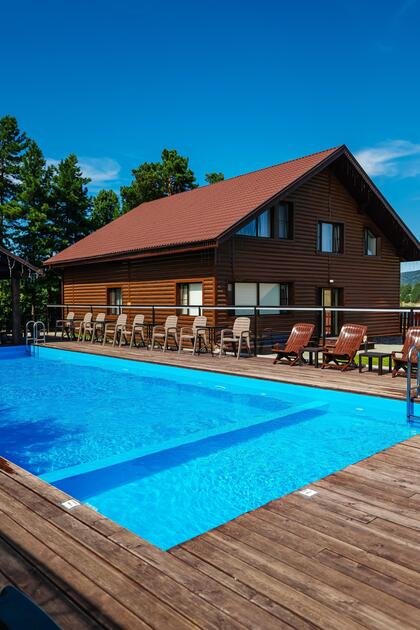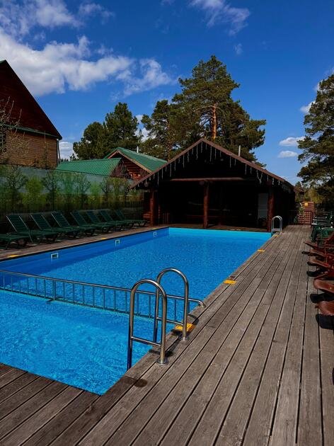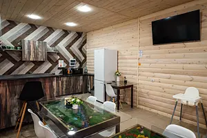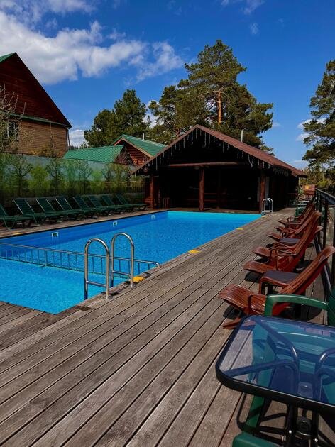 На территории комплекса созданы все условия для полноценного отдыха: русская баня с купелью-чаном на открытом огне, летний бассейн, просторная терраса с видом на реку, большая кухня-столовая и уютная мангальная зона. Для активного досуга доступны аэрохоккей, бильярд, спортивный зал, а также прокат мототехники, квадроциклов, снегоходов и велосипедов. Любители природы могут отправиться на рыбалку или охоту. Для вашего удобства мы организуем комфортабельный трансфер.