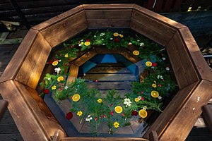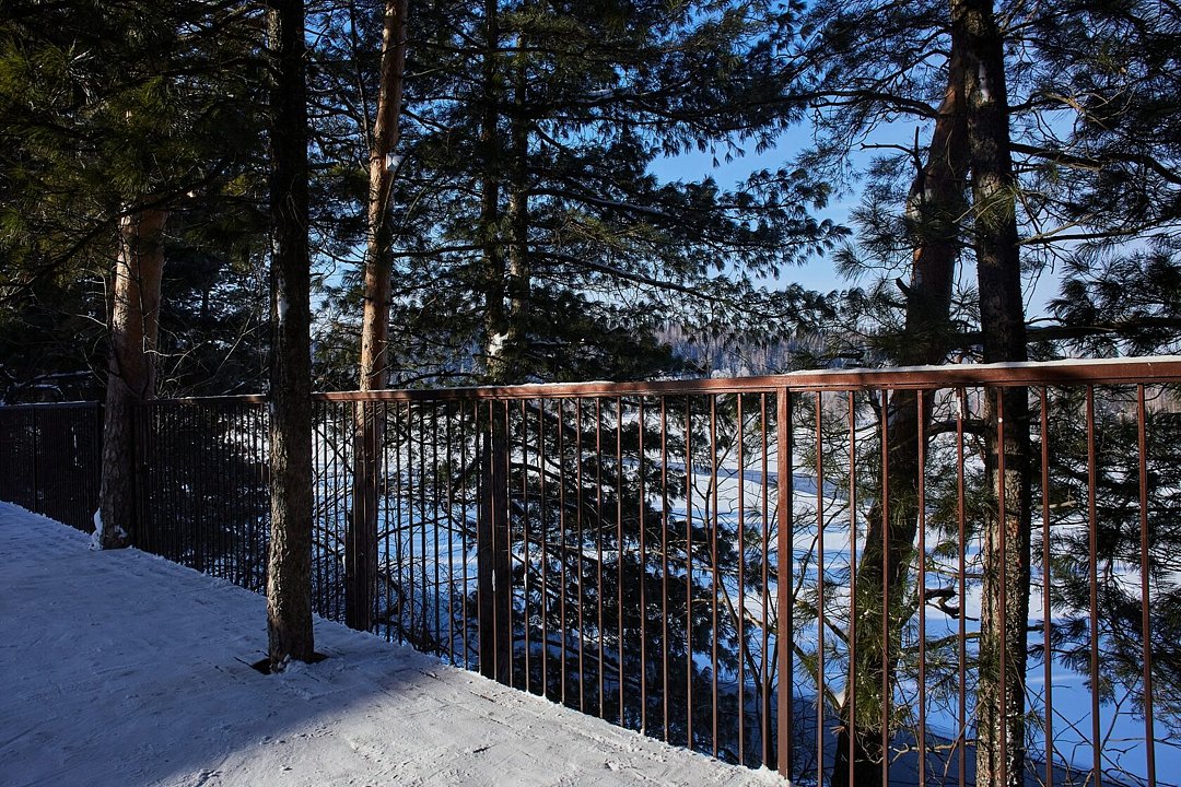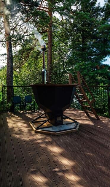 А также Вы можете погреться в уличном чане на огне, под соснами и кедрами на террасе.