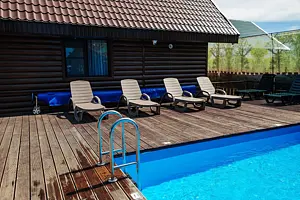 Тип бассейна: открытый бассейнВода в бассейне: подогреваемый бассейнРядом с бассейном: шезлонгиПериод работы: от с апреля до октября, летний сезонСтоимость
