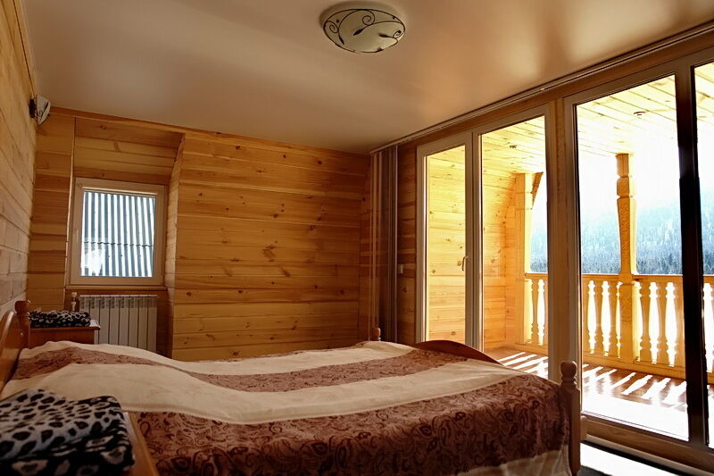 Двухкомнатный номер. Находится на 2-м этаже банного комплекса. Вход на этаж по отдельной лестнице. Окна и балкон с видом на озеро.