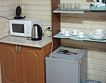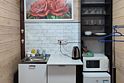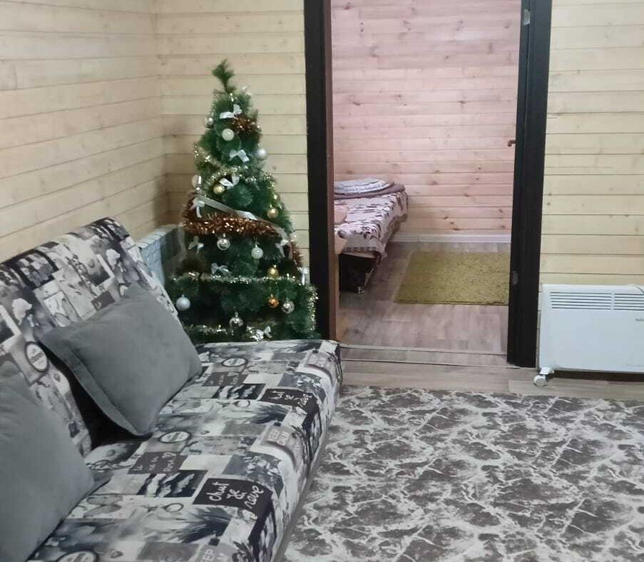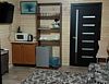 Номер 4-местный с двуспальной кроватью (с возможностью разделения) и раскладной диван-кровать. Оборудованная кухня : микроволновка, чайник, холодильник, кухонные принадлежности. Сан. узел с душевой.