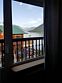 Окна и балкон с видом на озеро. Основное спальное место на двоих и 2 доп. места, удобства в номере — кухонная техника и санузел.
