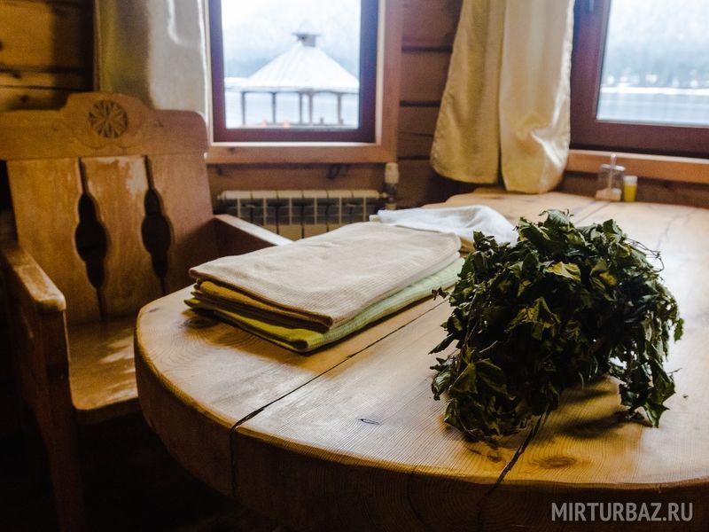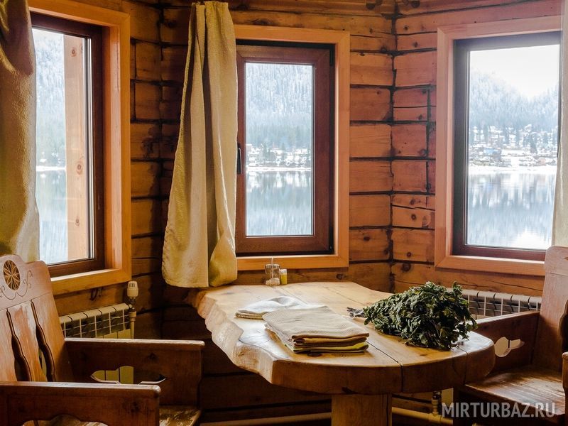 Большой популярностью у гостей усадьбы "Ару-Кёль" пользуется банный комплекс - отдельный двухэтажный коттедж, на первом этаже которого находится настоящая русская баня.