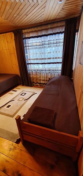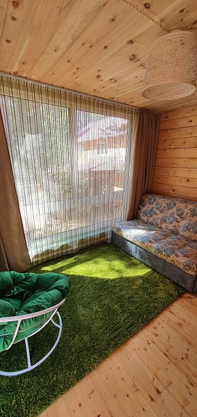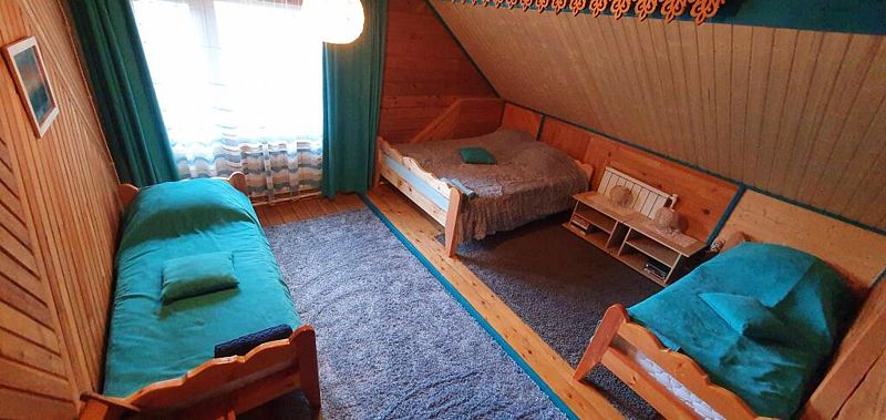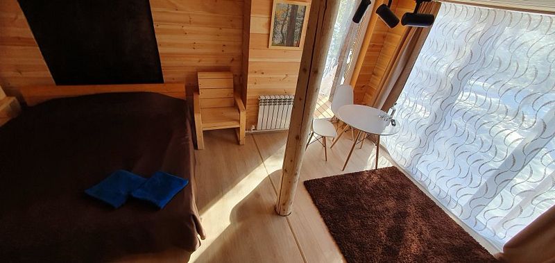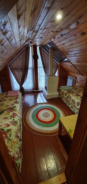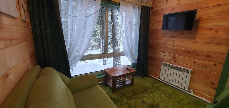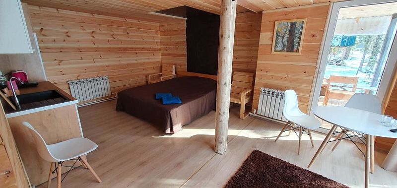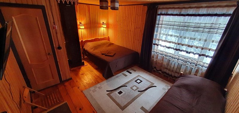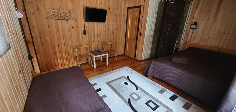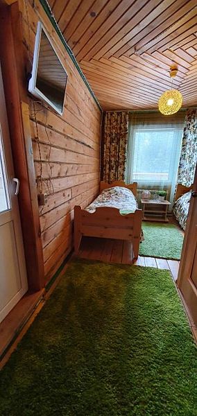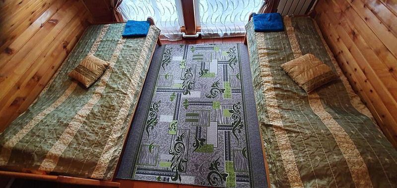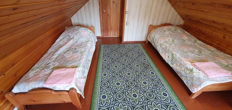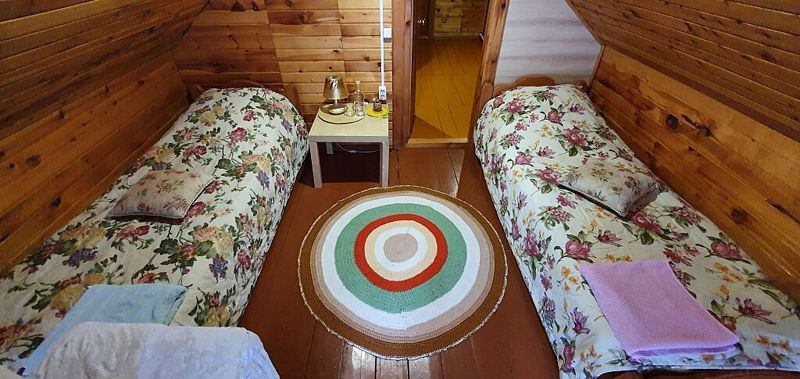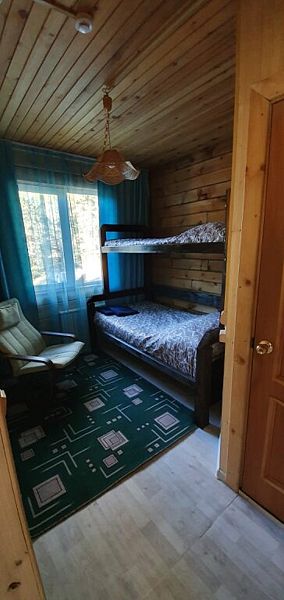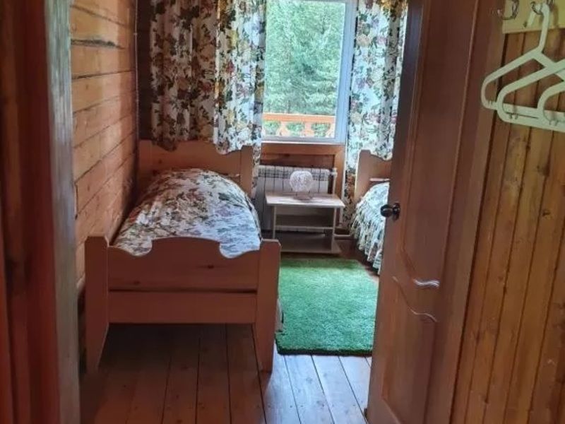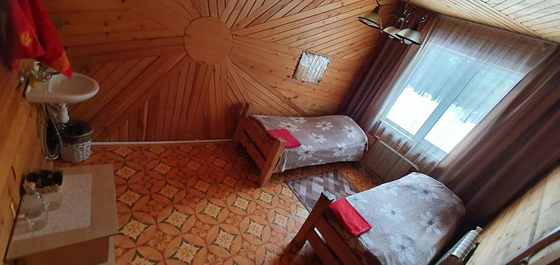 Эконом в кедровом доме на 7 номеров. 1 односпальная кровать и 1 двуспальная кровать.