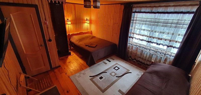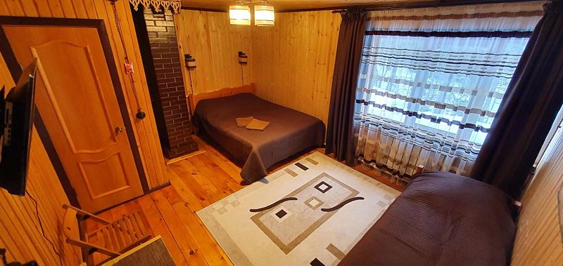 Комфорт в кедровом доме на 7 номеров. 1 односпальная кровать и 1 двуспальная кровать.
