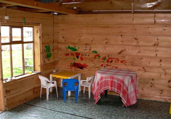 - Одна из комнат — веранда-гостиная. На веранде чайник + чайный сервиз, раковина, обогреватель.