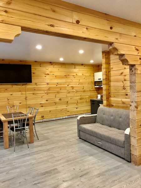 Дом рассчитан на 6 основных мест. В стоимость дома входит постельное белье, полотенца, средства гигиены, фен, утюг, гладильная доска, сушилка для одежды).