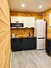На первом этаже большая студия (кухня, гостиная зона) санузел (душевая кабина, унитаз и раковина).