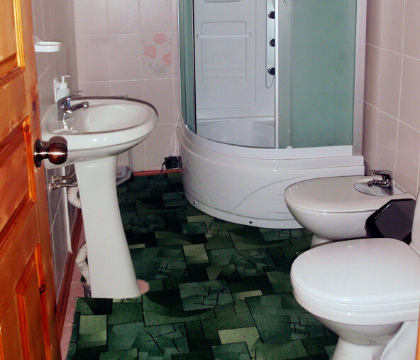 4 номера (стандарт). В каждом номере – две односпальные кровати, тумбочка, санузел (душ, туалет). На этаже – телевизор, мягкая мебель, холодильник.