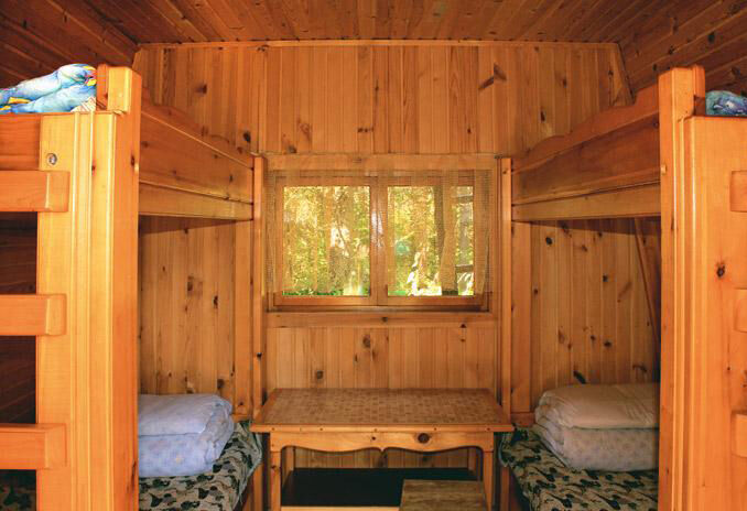 Два домика четырехместные, в них установлены двухъярусные кровати. Это удобно для небольшой семьи.