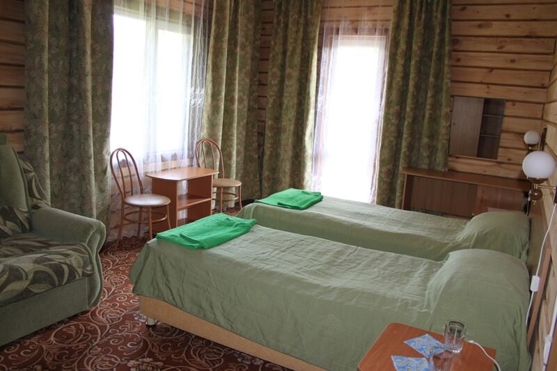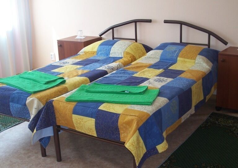 - Однокомнатный номер с двумя 1-спальными кроватями, дополнительным спальным местом (раскладная кровать), туалетной комнатой с душем;
