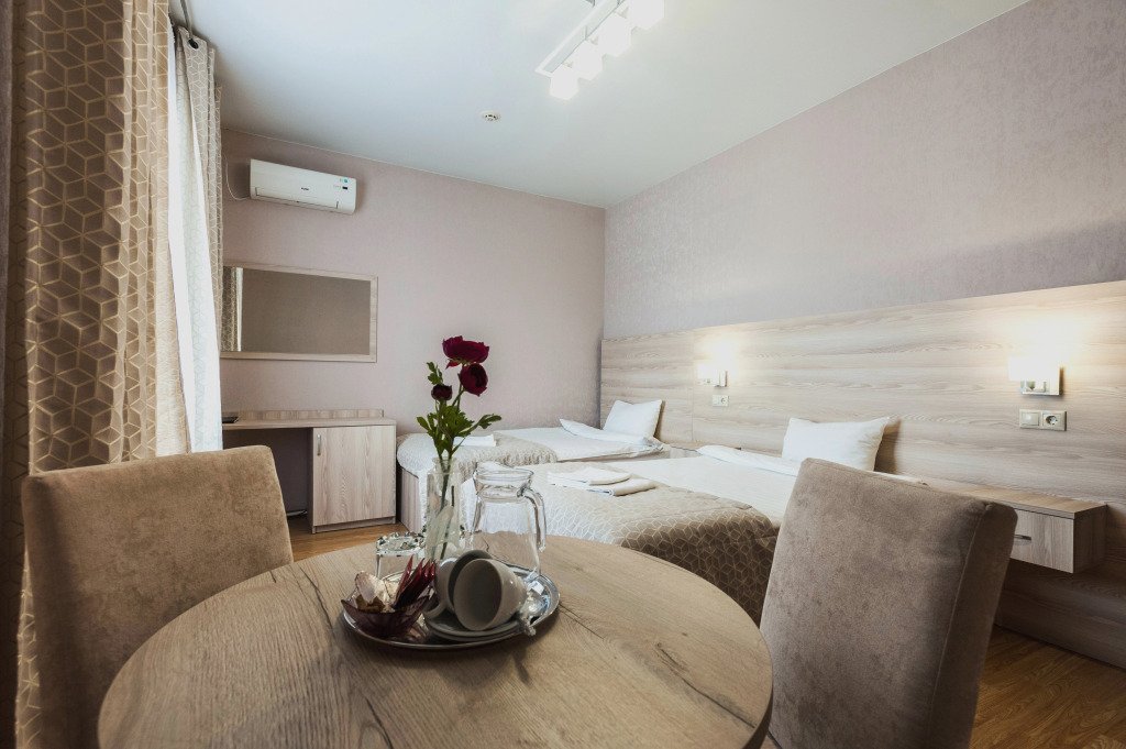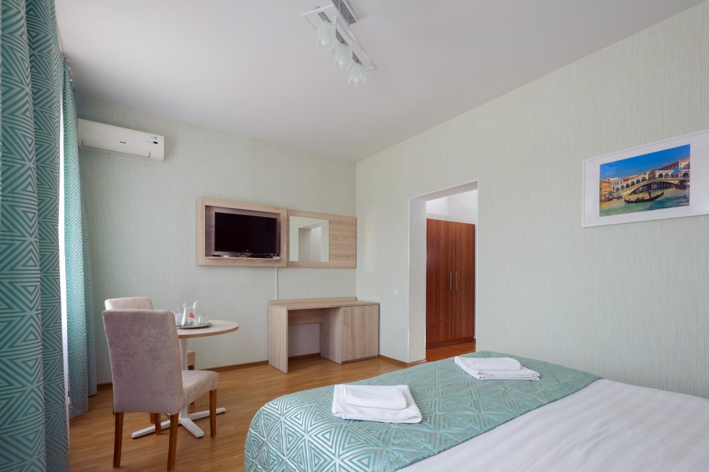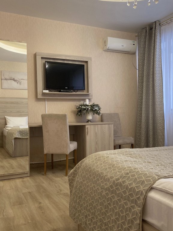 В номере вы найдёте телевизор и мини-бар. Оснащение зависит от выбранной категории номера.