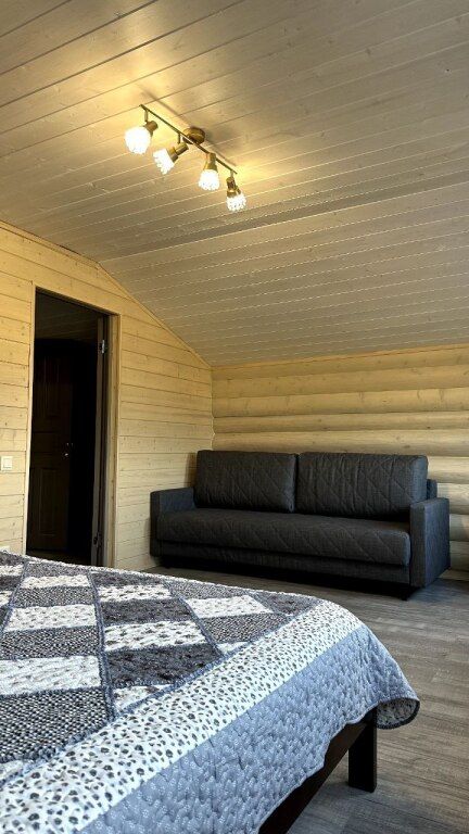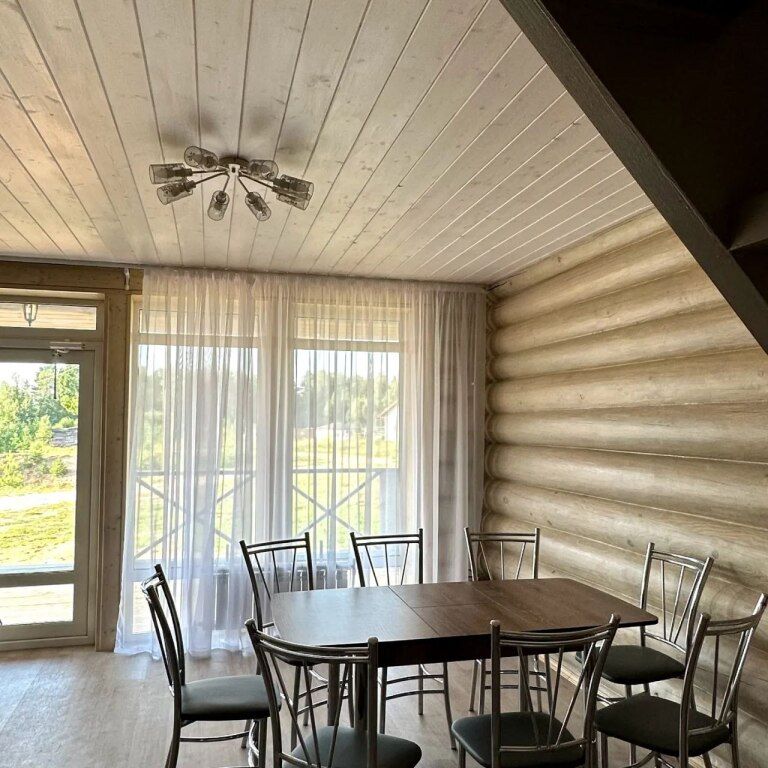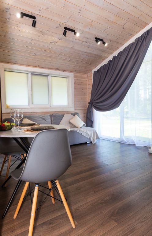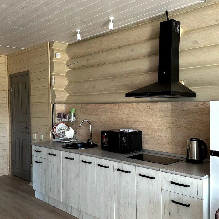 В доме есть все необходимое для комфортного отдыха: кухня-гостиная, ванная комната и спальни в светлых тонах. Отопление от электрического котла.