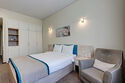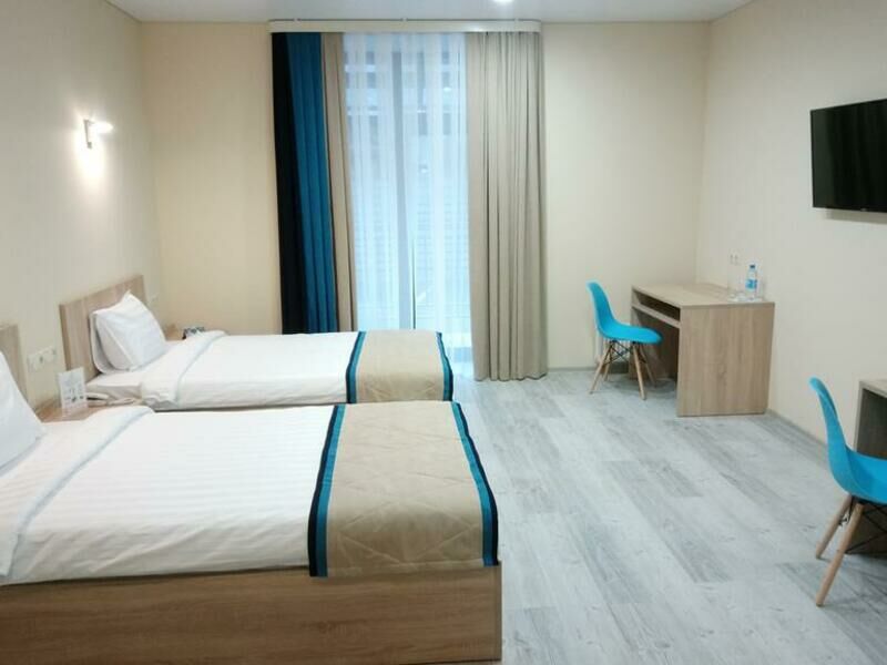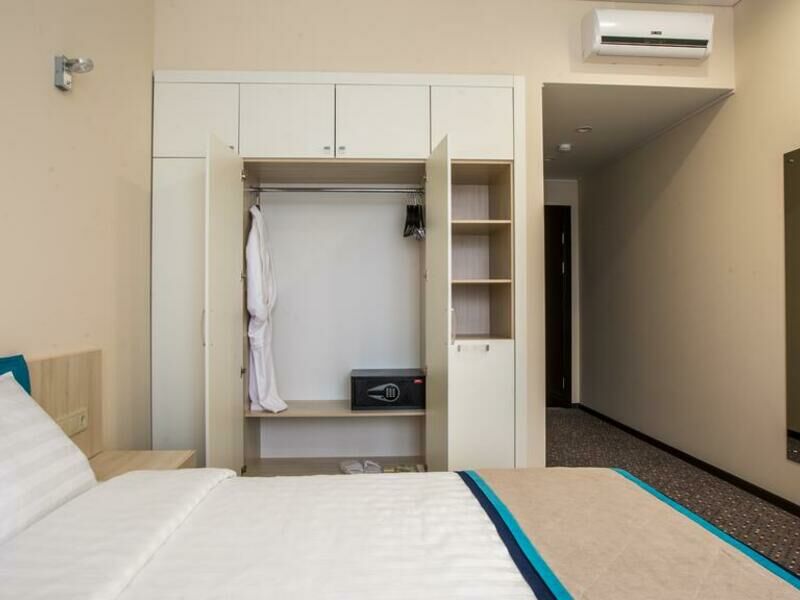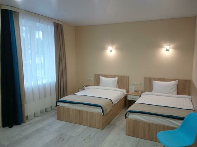3-х этажное здание без лифта включает в себя 33 комфортабельных номера – 2-х местные категории Улучшенный, Стандарт, Делюкс и 4-х местные Люксы. В стильных номерах, интерьеры которых оформлены в светлой цветовой гамме, имеется ванная комната с душевой кабиной, современная бытовая техника – ЖК-телевизор, фен, холодильник, кондиционер.