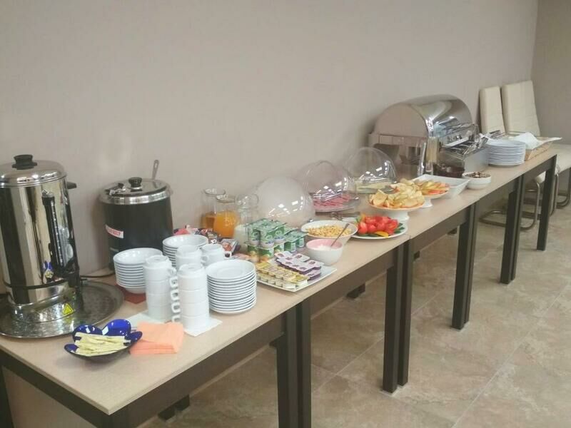 По утрам в гостиничном кафе сервируются завтраки по системе «шведский стол».