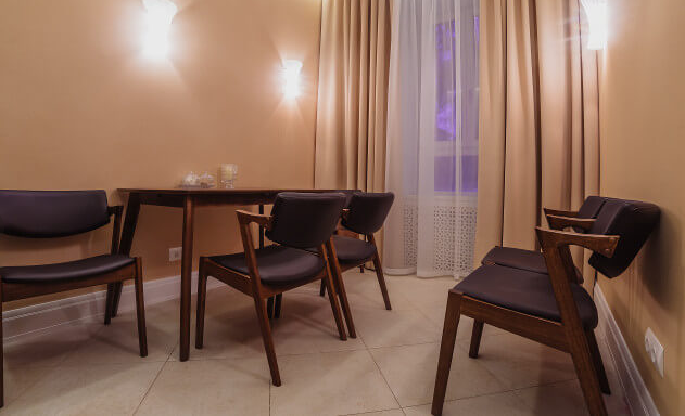 К вашим услугам гостиная комната, построенная по принципу круглого стола, что позволяет людям еще более удобно общаться между собой. Гостиная расположена на первом этаже отеля и оборудована всем необходимым для проведения ужинов и деловых встреч в закрытой обстановке.