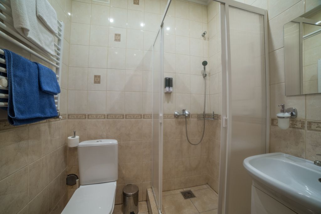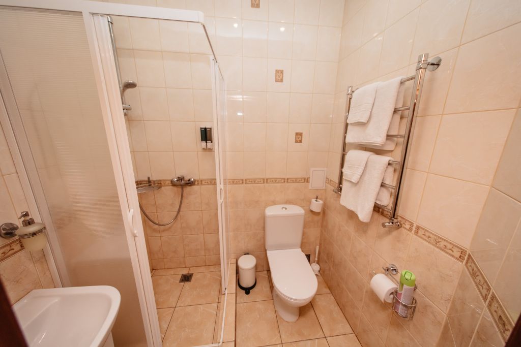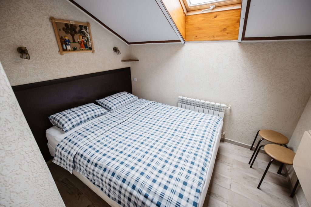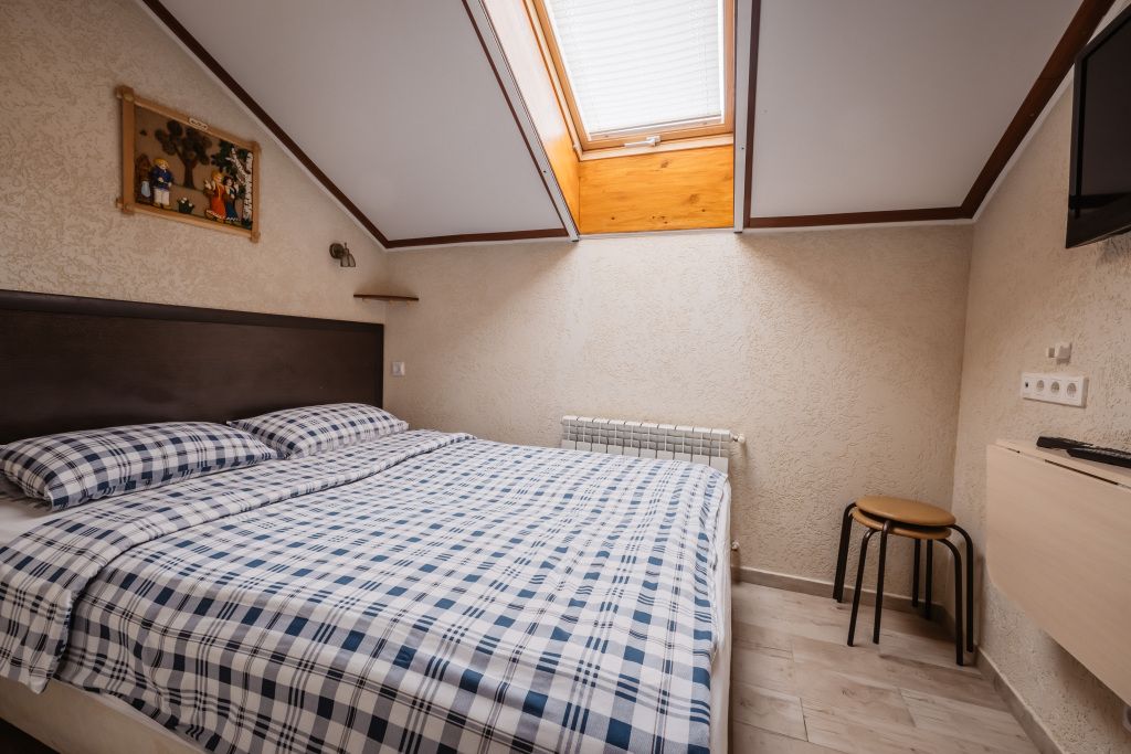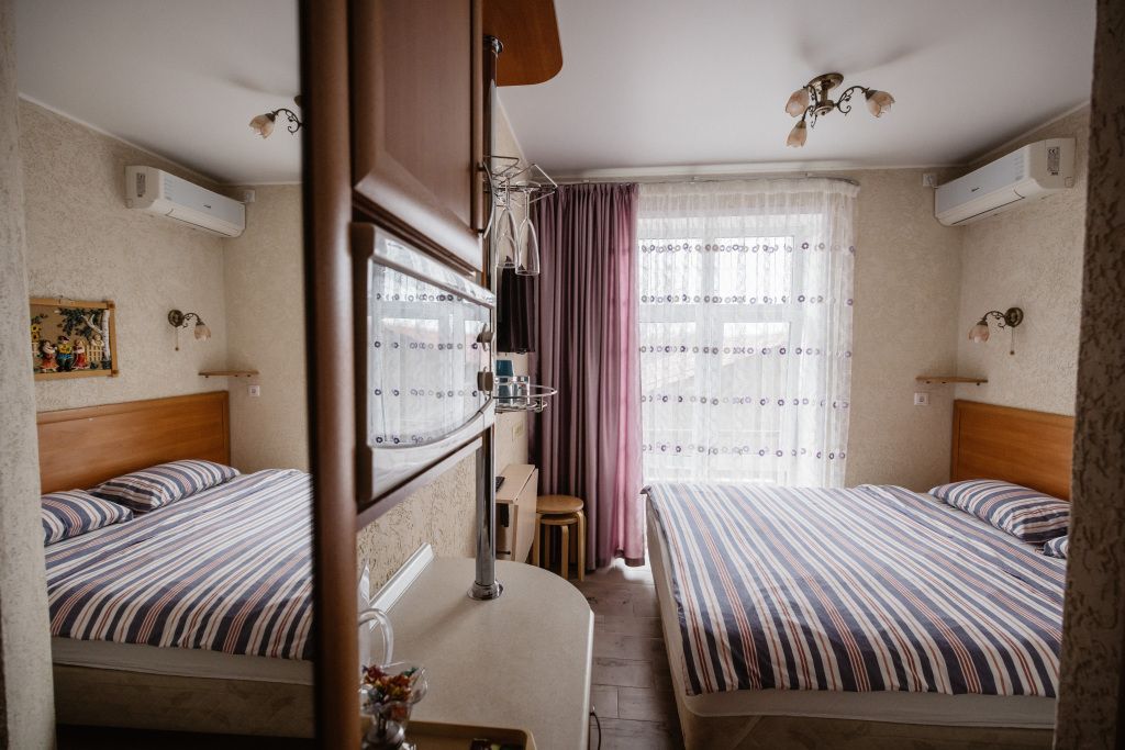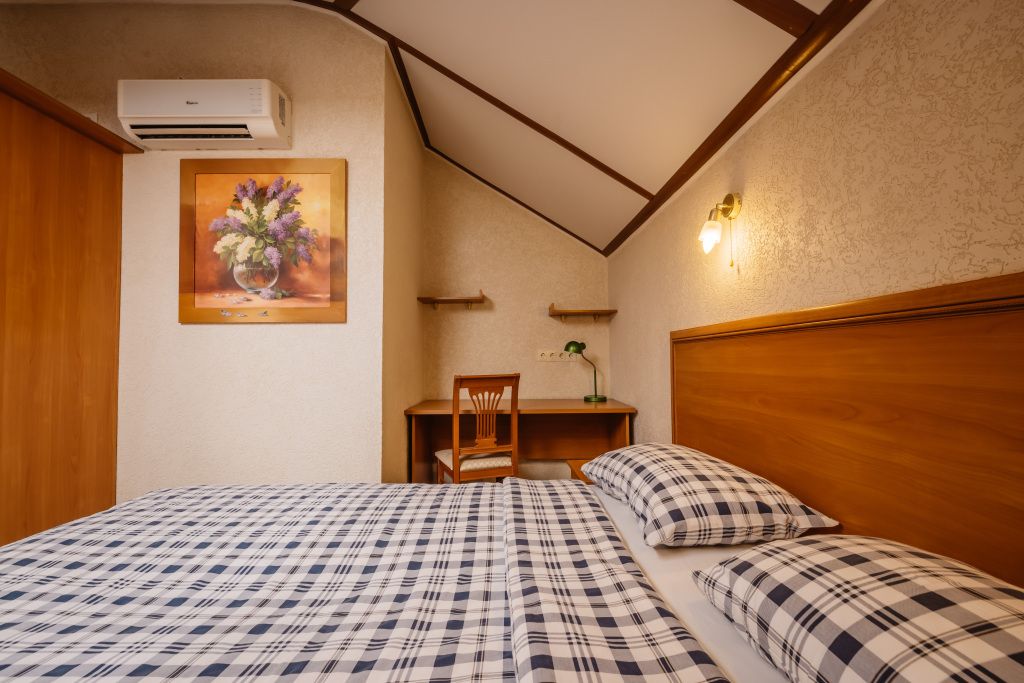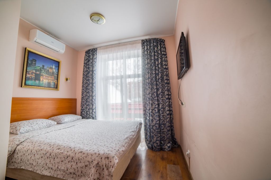 Предусматривает двухместное проживание, оборудована отдельным санузлом и душевой кабиной. В комнате: кухонный уголок с холодильником, мини-баром, эл. чайником, СВЧ и посудой; двуспальная кровать или 2 раздельные кровати (по желанию гостя); плазменный телевизор; шкаф для одежды; кондиционер; 2 табуретки; одноразовые тапочки; бесплатный чай-сахар. Санузел: раковина; унитаз; душевая кабина; фен; банные принадлежности (гель для душа, шампунь, жидкое мыло для рук, зубные наборы). Дополнительно: питание: завтрак (120 руб.-360 руб.), обед и ужин (по меню в любое удобное время); халат (аренда 150 руб.).В гостиничном номере