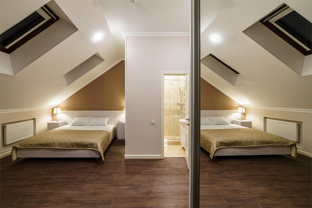 Это комфортабельные номера с мансардой или без нее. В номере 2 односпальные или 1 двуспальная кровать. Возможно предоставление дополнительного спального места. Номера могут отличаться от представленных на фото.Услуги и удобства