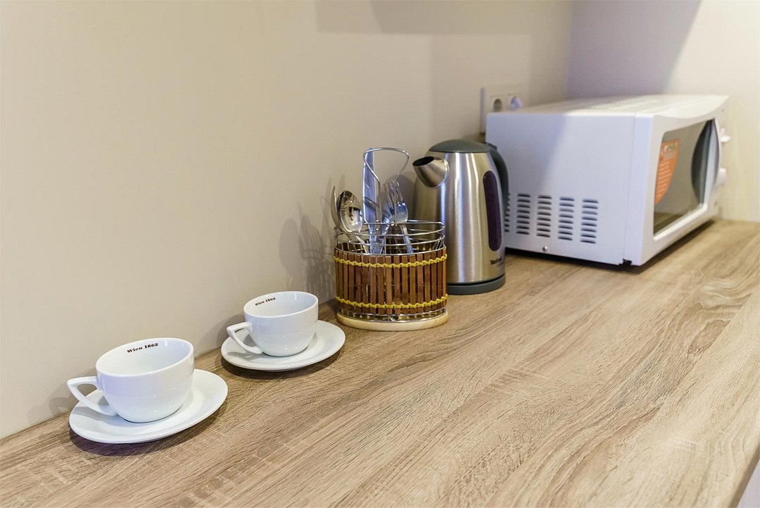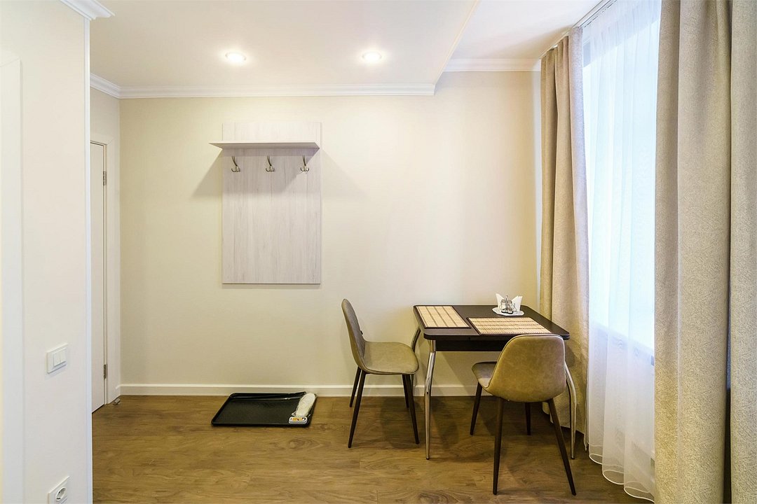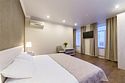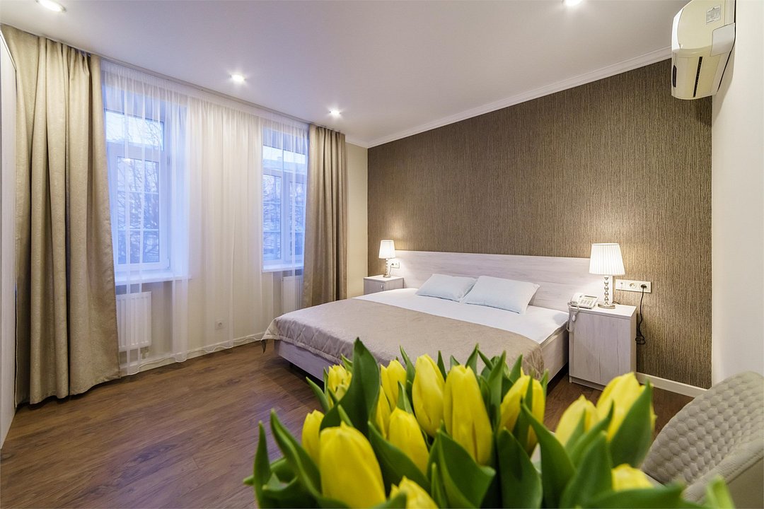 Большие апартаменты с мини-кухней. Этот номер отличается своей освещённостью, ведь в нем 5 больших окон с видом на одну из главных улиц города. Такой номер идеально подойдет для спокойного и тихого отдыха. Возможно предоставления до 2-х дополнительных мест.Услуги и удобства