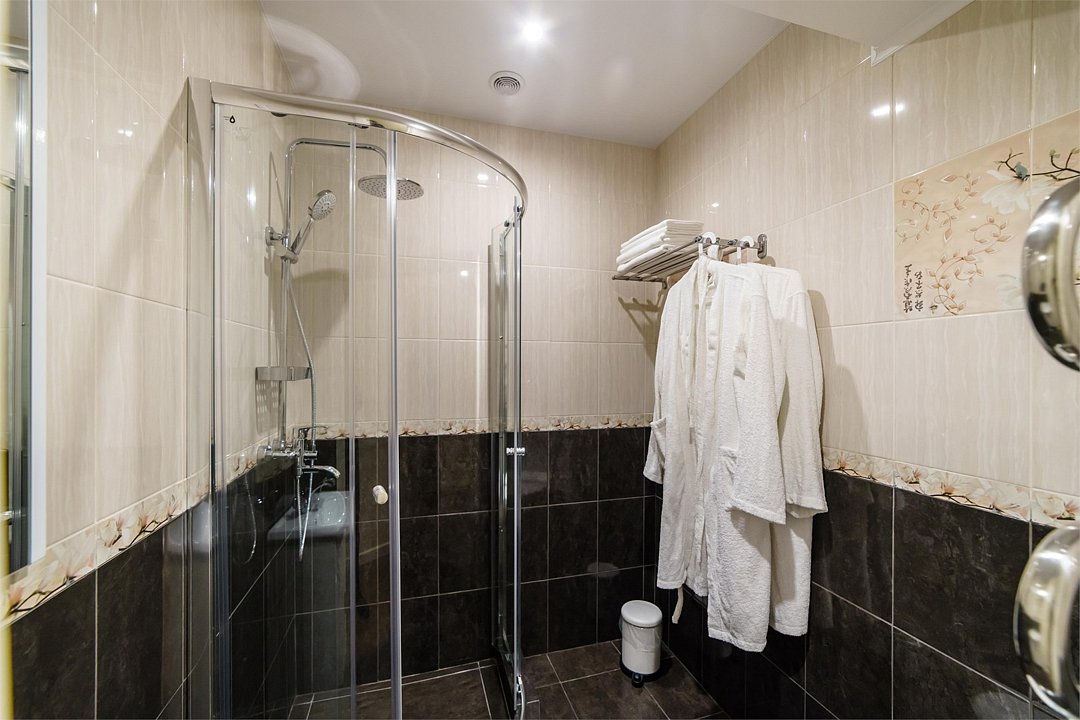 телевизор, Wi-Fi, кондиционер, светильник, настольные лампы, фен, электронные замки, ванная комната, душевая кабина, банные принадлежности, банные полотенца, тапочки, гигиенические средства, двуспальная кровать, две односпальные кровати, две односпальные или большая двуспальная кровать, тумбы, шкаф для одежды, вешалки, журнальный столик, зеркало, обслуживание номеров, питьевая вода, вид на город, вид во двор, стаканы, стул, туалетные средства, цифровое тв, внутренний телефон, мини-холодильник, номер для некурящих, можно с питомцамиВ номере