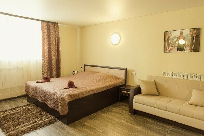 Комплектация: Кровать King Size + раскладной диван, мини-холодильник, СВЧ печь, телевизор, кондиционер, wi-fi, чайник, фен.
