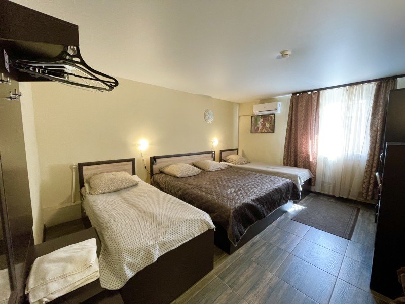 Комплектация: Кровать King Size + Single или Три раздельные кровати, мини-холодильник, СВЧ печь, кондиционер,телевизор, wi-fi, чайник, фен.
