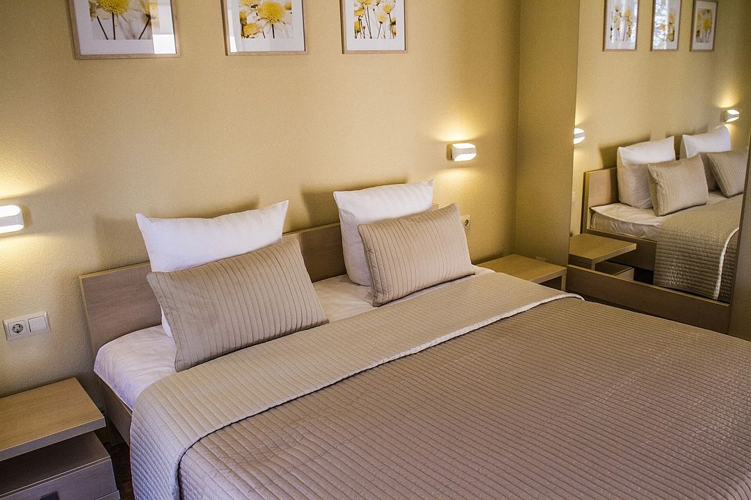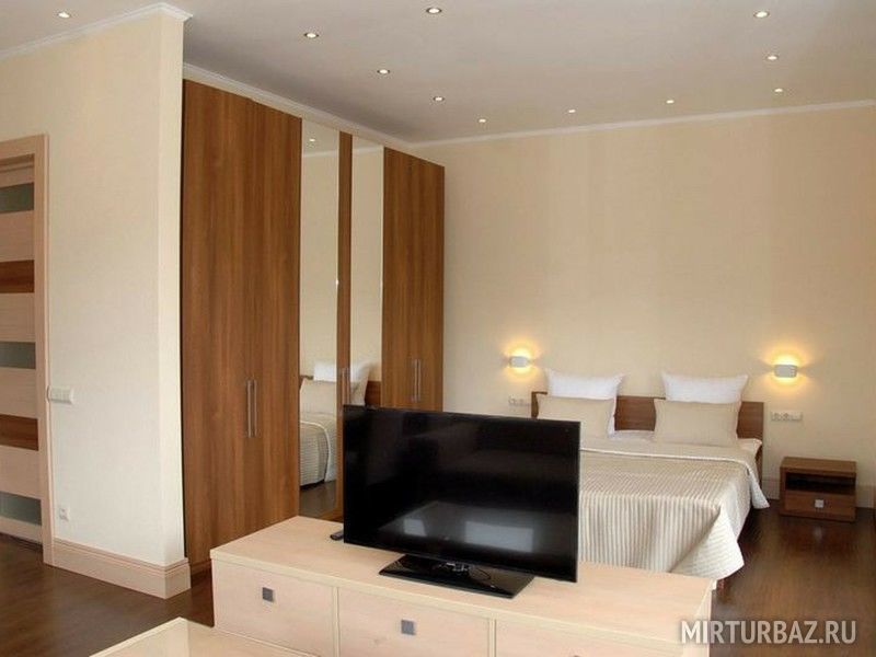 Светлые номера, выполненные в лаконичном стиле и приятной цветовой гамме, оснащены всеми удобствами для проживания с комфортом. В распоряжении постояльцев будут: гостиная, телевизор с плоским экраном и спутниковыми каналами, собственная ванная, фен, шкаф для одежды.