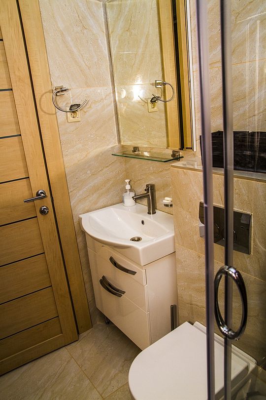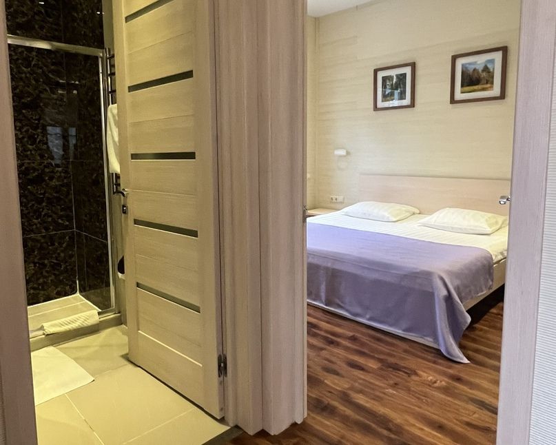 Светлые номера, выполненные в лаконичном стиле и приятной цветовой гамме, оснащены всеми удобствами для проживания с комфортом. В распоряжении постояльцев будут: гостиная, телевизор с плоским экраном и спутниковыми каналами, собственная ванная, фен, шкаф для одежды.