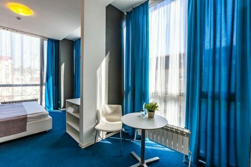 Для проживания предлагаются светлые номера с красивым видом на главную улицу. В комнатах есть всё необходимое для комфортного отдыха вдали от дома: Wi-Fi, современная мебель и техника, пространство для хранения вещей, чай, кофе, бутилированная вода. В ванной: банные принадлежности, тапочки, халат (по запросу).
