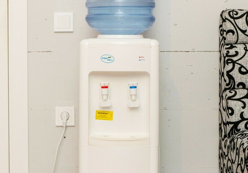 общая кухня (две - с плитой, микроволновой печью, стиральной машиной, посудой, кофемашиной, кулером с водой)