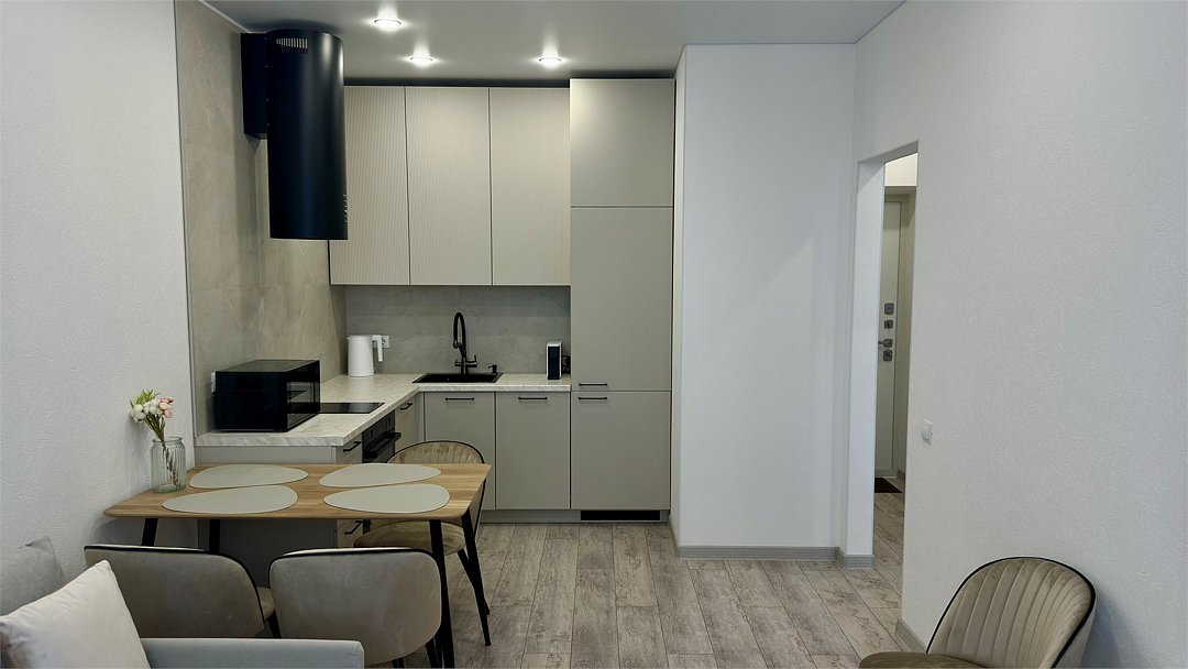 Уютная квартира, где все продумано до мелочей с паркингом. Насладиться отдыхом даже если вы приехали по делам. Уютная квартира формата 1+, где все продумано до мелочей: большая кровать с ортопедическим матрасом и мягким постельным бельем позволит выспаться и набраться сил, взбодриться под утренним горячем душем, улыбнуться себе в зеркало, сварить чашечку кофе ☕️ и насладиться солнечными лучами, глядя в огромные окна в пол - чудесное начало дня, правда?Вечером можно включить торшер и насладиться чтением книг в тишине или посмотреть интересный фильм на большом экране. Для вашего удобства в ванной комнате расположена стиральная машина, фен. На кухне есть вся необходимая посуда и техника: капсульная кофемашина, свч, варочная панель и духовой шкаф, вместительный холодильник и посудомоечная машина. В летнюю жару спасёт кондиционер. Побывав здесь один раз - вам точно захочется вернуться снова. ✅Арендуя нашу квартиру, Вы получаете парковочное место в паркинге за доп. плату. Скидка на длительный срок. Заселение граждан старше 21 года и только по предъявлению ПАСПОРТА. Курение запрещено! При заселении взимается залог в размере 3 000р. ⛔️ Проведение вечеринок и мероприятий запрещено!Проживание с животными запрещено. Расчетный час: 15:00-12:00Услуги и удобства