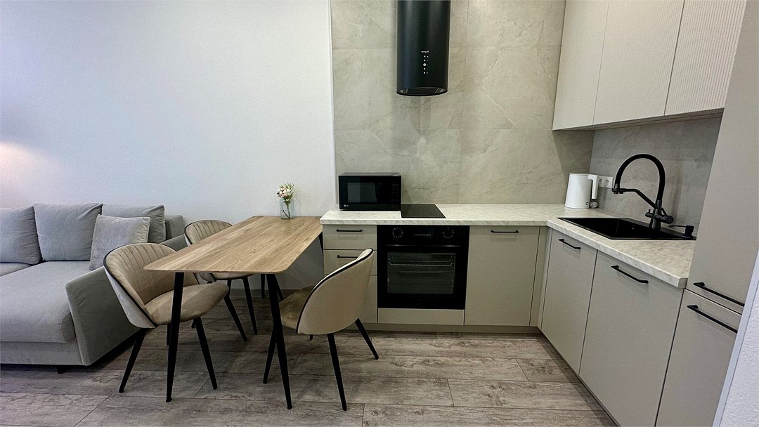 Wi-Fi, кондиционер, фен, утюг, душевая кабина, двуспальная кровать, стулья, шкаф для одежды, раковина, стол, туалет, диван-кровать, раскладной диван, шкаф-купе, телевизор со Smart TV, духовой шкаф, зеркало в полный ростВ апартаментах