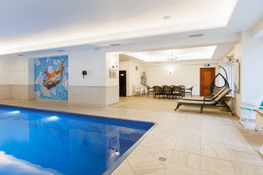 Тип бассейна: крытый бассейнВода в бассейне: подогреваемый бассейнРядом с бассейном: шезлонгиСтоимость