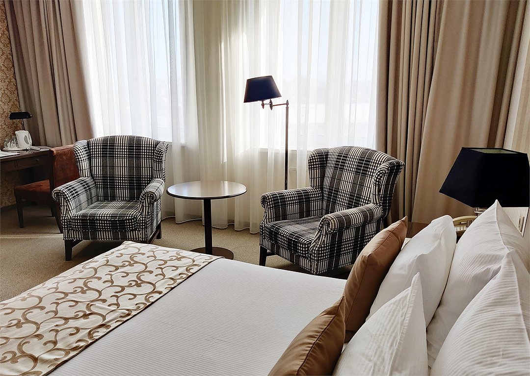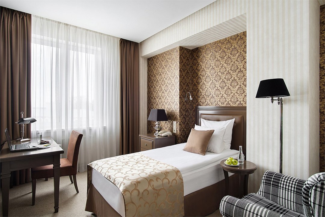 Категория номера, сочетающая в себе компактность, классический стиль и достойный уровень удобств. Номера площадью от 18 до 20 кв. м оформлены в сдержанном классическом стиле в спокойной цветовой гамме (светлые и пастельные тона), располагаются на 3-м и 4-м этажах гостиницы. Каждый номер имеет кровать с удобным матрасом, затемняющие шторы способствуют полноценному отдыху, а оборудованная рабочая зона с телефоном с междугородной и международной связью и бесплатным интернетом – успешному решению рабочих вопросов.Услуги и удобства