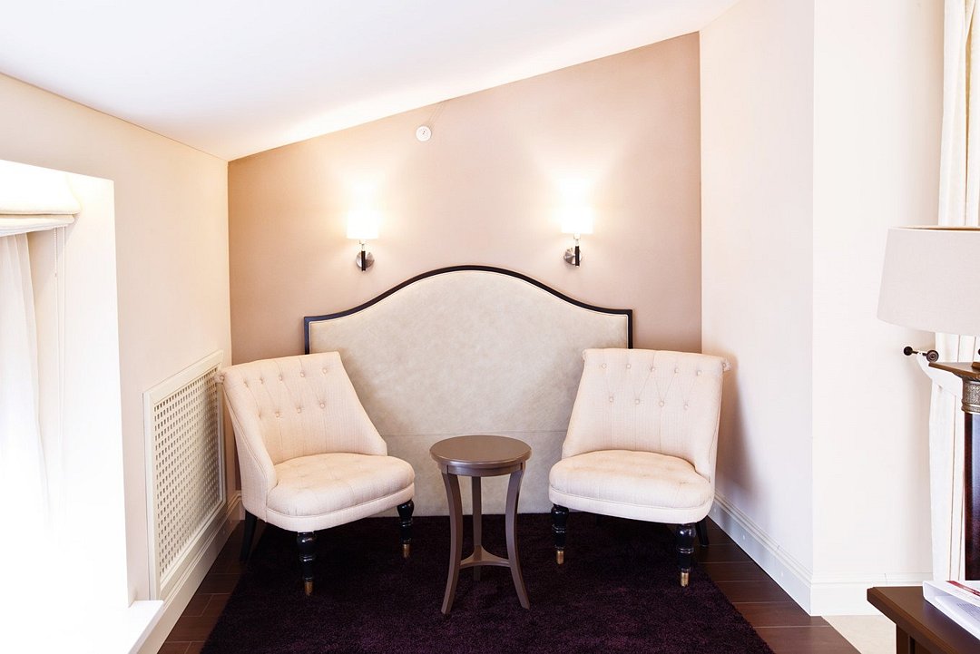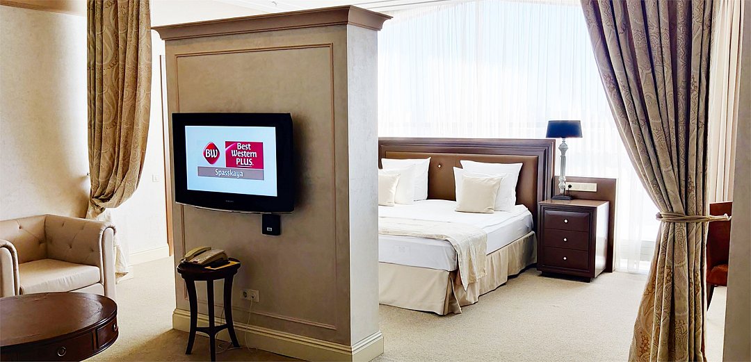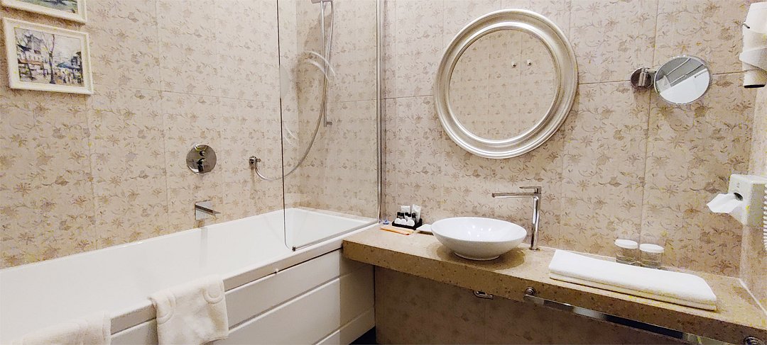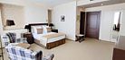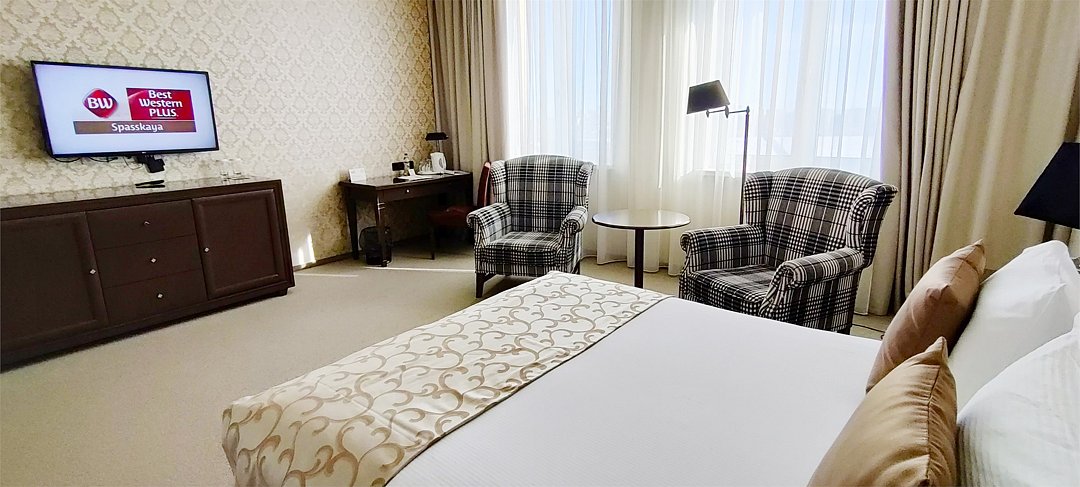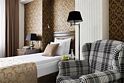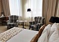 Интерьер просторного номера площадью от 30 до 40 кв.м. воплощён в традициях классического английского стиля и оформлен в благородных сдержанных пастельных оттенках. Номер является комфортной спальней с удобной двуспальной кроватью, что позволяет хорошо отдохнуть после плодотворного рабочего дня. Так же в номере имеется зона отдыха с креслами и чайным столиком и оборудованное рабочее место. Мягкая мебель и стол из благородного дерева создают благоприятную атмосферу для решения деловых задач. А высокая технологическая оснащенность номера придает классическому интерьеру современное звучание. Интерьер ванной комнаты так же выполнен в спокойных тонах. Для удобства имеется дублирующий динамик и регулятор громкости. Просторная ванная поможет расслабиться после долгого дня. Всем гостям предоставляются мягкие белоснежные халаты и все необходимые косметические принадлежности.Услуги и удобства