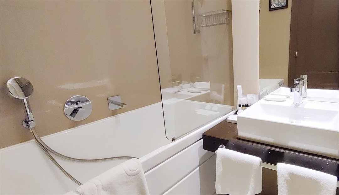 Wi-Fi, телефон, кондиционер, настольные лампы, фен, ванна, халаты, банные полотенца, тапочки, косметические средства, кровать «King size», диван, кресла, тумбы, стулья, шкаф для одежды, гардеробная, журнальный столик, письменный стол, багажная тумба, зеркало, пуфики, мини-бар, чайный набор, сейф, унитаз, раковина, питьевая вода, ковровое покрытие, душ, вид на город, панорамные окна, цифровое тв, телевизор с плоским экраном, номер для некурящих, чайная станцияВ номере