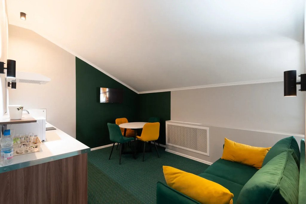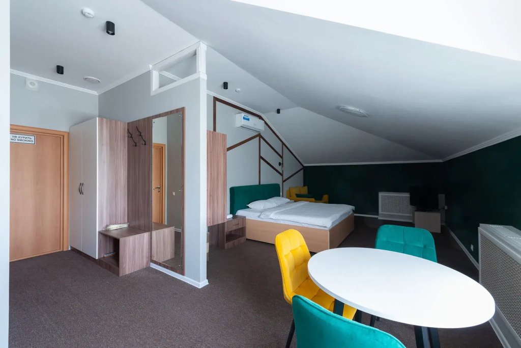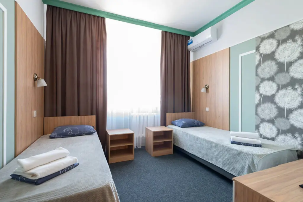 В номере вы найдёте телевизор. Оснащение зависит от выбранной категории номера.