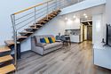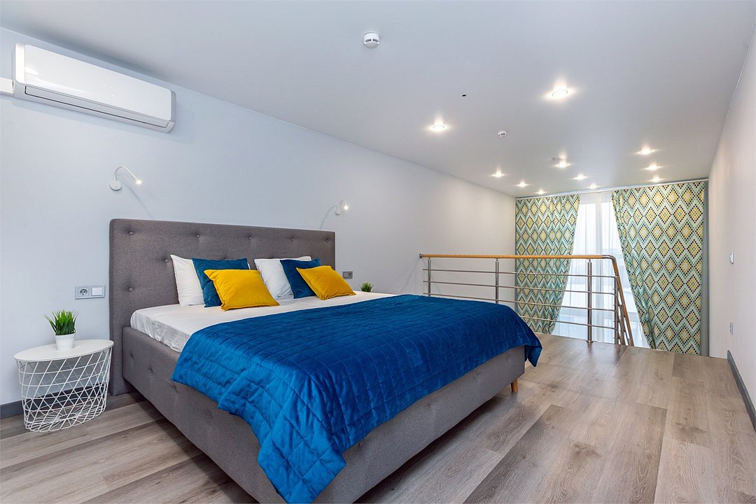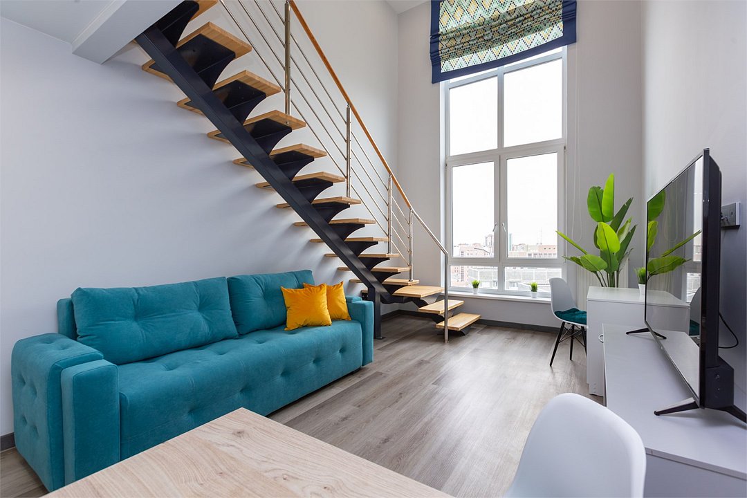 Двухуровневая студия на Чернышевского 1Б с высокими потолками 6 метров и панорамным видом на город! Расположена в центре города, в 10 минутах от знаменитой Тюменской набережной и Моста влюбленных. Двуспальная кровать и раскладной двуспальный диван. Телевизор SMART Сплит системаУслуги и удобства