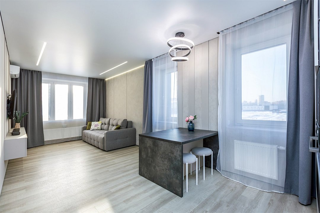 Нoвaя cовpeмeнная однокомнатная квартира в современном ЖК! Прогулочныe зоны с различными активностями для детей и взрocлых! Пруд! Нa тeppитории жилoгo кoмплекcа имeeтся пpoстоpный охраняемый двoр с детской площадкoй, зoной отдыха и прогулочной территорией! ГАРАНТИРУЕМ, ЧТО АПАРТАМЕНТЫ ПОЛНОСТЬЮ СООТВЕТСТВУЮТ ФОТОГРАФИЯМ ДЕЙСТВУЮТ СКИДКИ НА ПРОЖИВАНИЕ Об АПАРТАМЕНТАХ: Полноценная однокомнатная студия квартира на 3 этаже для 4 гостей. Просторная комната и кухня с раскладным диваном. В комнате большая двуспальная кровать. SMART ТВ с кабельными каналами. Для комфортного проживания есть вся бытовая техника: электроплита, электрический чайник, микроволновая печь, духовой шкаф. Имеется вся необходимая посуда. Имеется водонагреватель на случай отключения горячей воды. Высокоскоростной бесплатный WI-FI. Питьевая вода. Белоснежное постельное белье, полотенца, тапочки. Гель для душа, шампунь, мыло, туалетная бумага, освежитель воздуха, средства по уходу за обувью, стиральный порошок, капсулы для посудомоечной машины, губка и средство для посуды (включено в стоимость). УВАЖАЕМЫЕ ГОСТИ! ПОЖАЛУЙСТА обратите внимание на основные правила наших апартаментов. ⛔️В квартире запрещены любые массовые мероприятия, дни рождения, запрещено курение сигарет и кальянов, а так же проживание с животными. За это взимается штраф и немедленное выселение. Гости, младше 21 года, заселяются в сопровождении взрослых. Гостям в состоянии алкогольного или наркотического опьянения будет отказано. - В день заезда требуется полная оплата первых суток не позднее 18:00 или заявка аннулируется. - При бронировании апартаментов просим Вас сообщить ориентировочное время заезда. - При заселении нужно иметь с собой паспорт и страховой депозит 3000 руб (в праздничные дни депозит может быть увеличен), который будет возвращается при выезде, если все условия договора соблюдены. - ⏰ Гарантированное время заселения 15:00, выезд до 12:00 следующего дня. Если Вам необходим ранний заезд или поздний выезд, то он возможен при предварительном бронировании или по факту заселения (при наличии возможности). - Полную оплату проживания можно сделать при заселении любым удобным способом (наличными, переводом из приложения любого банка, через СБП).Услуги и удобства
