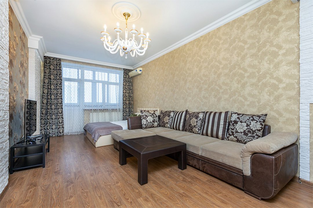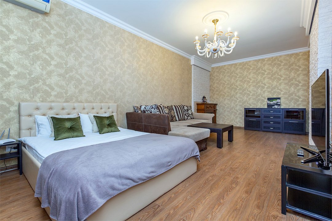 кабельное телевидение, Wi-Fi, интернет, холодильник, кондиционер, светильник, фен, плита для приготовления пищи, микроволновая печь, утюг, обогреватель, ванная комната, санузел, водонагреватель, теплый пол, халаты, банные полотенца, тапочки, гигиенические средства, косметические средства, лоджия, кровать «King size», гладильная доска, стулья, шкаф для одежды, вешалки, журнальный столик, обеденный стол, зеркало, мебельный гарнитур, кухня, чайный набор, набор посуды, стиральная машина, чайник, унитаз, раковина, питьевая вода, обеденная зона, гостиная зона, отопление, душ, вид на город, вид во двор, высокие потолки, кухонная посуда, стаканы, кухонная утварь, столовые приборы, стул, стол, тумба, туалетные средства, туалет, сушилка для белья, раскладной диван, телевизор с плоским экраном, кухонный уголок, шкаф-купе, гостиничная парфюмерия, духовой шкаф, духовка, двуспальный раскладной диван-кровать, межкомнатная дверь, уборка номера, набор для приготовления чая и кофе, вешалки-плечики, без питомцевВ квартире